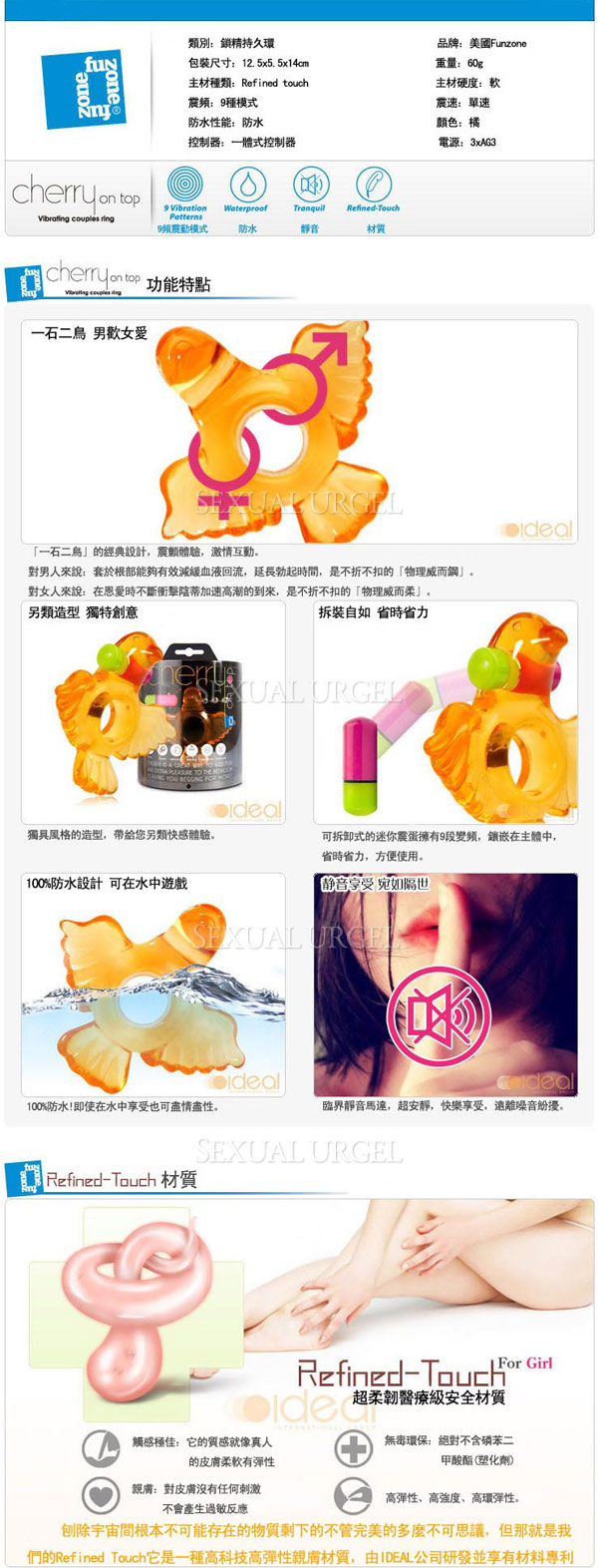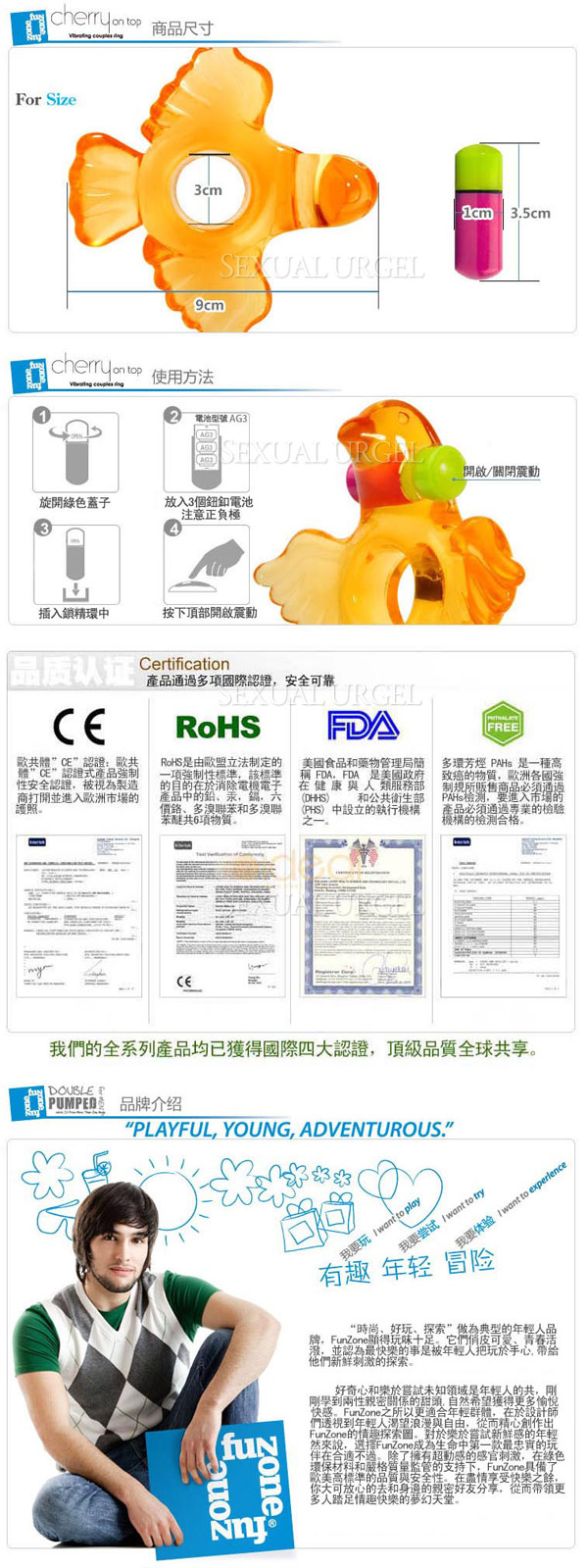 .主商品:美國 Funzone-Cherry On Top Bird 飛鳥探蜜 九頻震動環x1