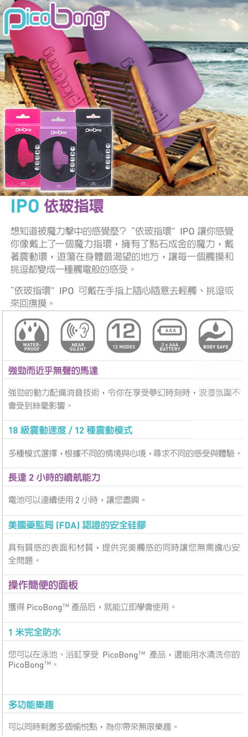 .主商品:瑞典PicoBong -IPO FINGER VIBE 依玻 強震魔力指環-黑*1