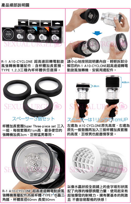 .商品內容:日本RENDS-R-1 A10-CYCLONE 超高速迴轉電動旋風強轉機專屬配件內裝杯體 TYPE3極樂觸手﹝S-M﹞ X1