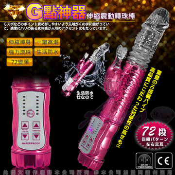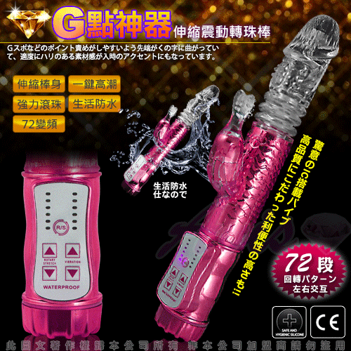最新強力電動伸縮按摩棒,可同時震動陰道、陰核,震動力強勁!耐用、耐操,同時可震動,遠遠超越了男性陽具所能發揮的體能極限,強烈的戳幹力,幾乎讓人無法一手掌握,再怎麼強烈的燎原慾火,也會被它所撲滅夷平。中間的環紋部分不停地伸縮、抽動,在您的私處進出、摩擦;震蛋的拍打、添吸著您最敏感的陰蒂……