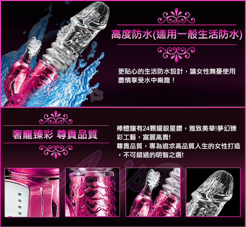 整體設計符合人體工學,與身體配合更完美!靜音設計,全機生活防水功能設計,讓快樂無拘無束盡情享受前所未有的至強新快感!
