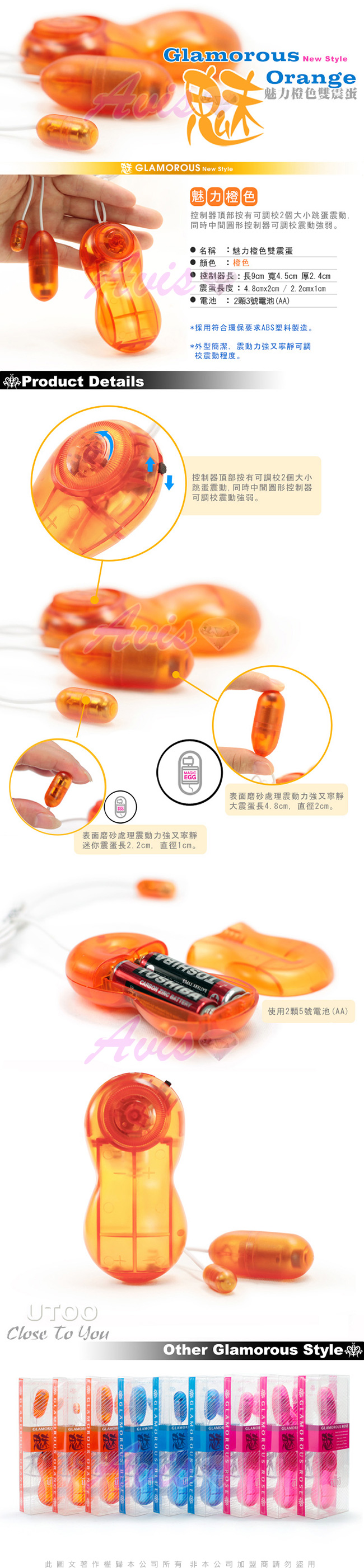 商品名稱:香港UTOO-魅力雙震蛋(M+S)-橘