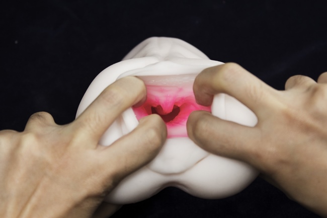 而尾段的部分,因為沒有設計儲精空間,所以到達時可以感受龜頭完全被包覆住,老二被含中帶吸的感覺,相當爽