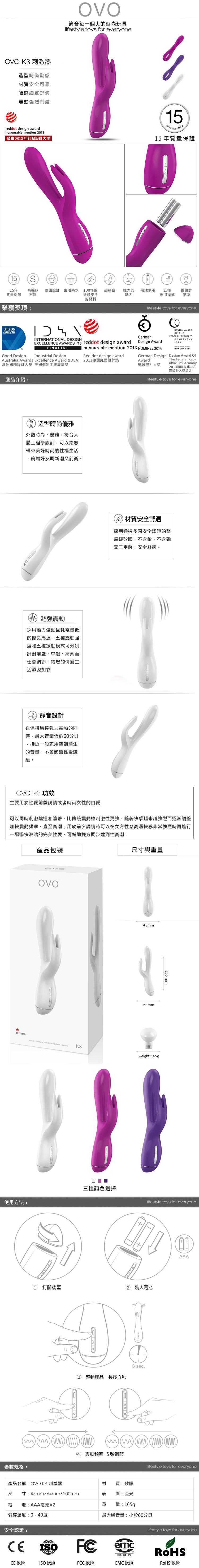 .主商品:德國OVO-K3 寶妮小兔 5段變頻 多功能 雙叉 震動按摩棒-桃紅色X1