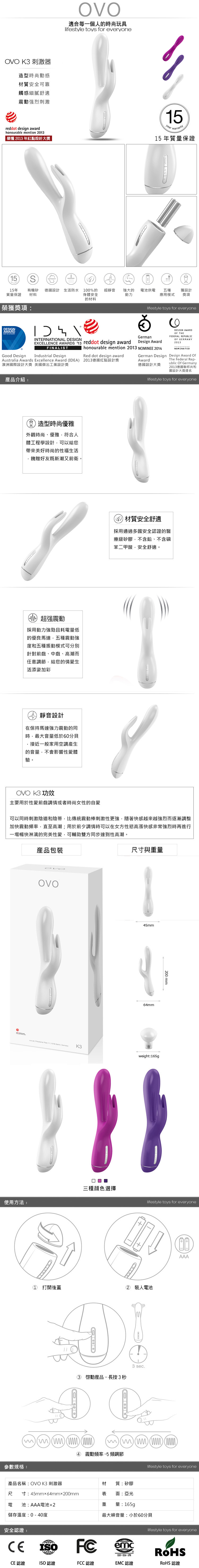 .主商品:德國OVO-K3 寶妮小兔 5段變頻 多功能 雙叉 震動按摩棒-白色X1