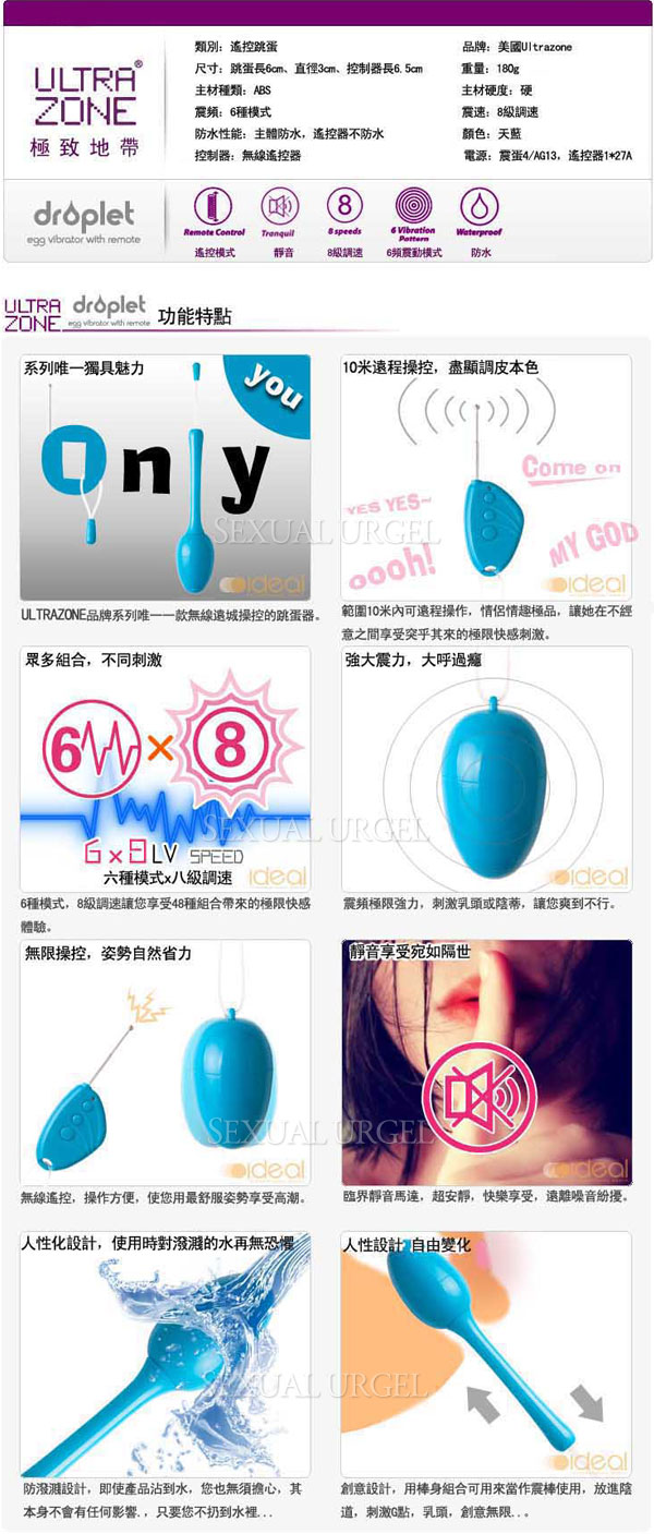 .主商品:美國 Ultrazone Droplet dew drop 夢幻滴露 創意變形 遙控跳蛋 水藍x1