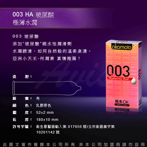 品名:岡本003-HA 玻尿酸極薄保險套