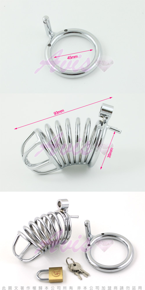 冰冷的金屬,是否降低愛人的欲望?一個金屬鳥籠加上卡環,將愛人牢牢鎖住,流暢的線條,厚實的金屬質感,可以防止手淫等行為,是非常時尚的sm貞操帶,可以全天候長時間穿戴。