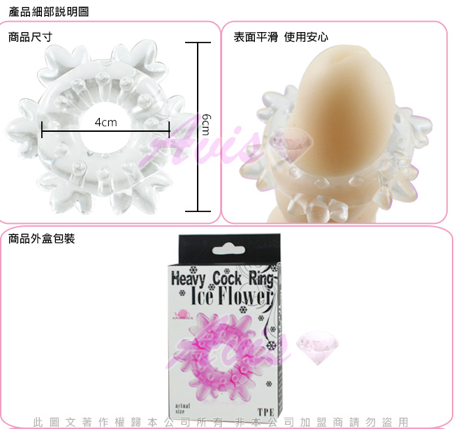 .主商品:APHRODISIA 馴龍高手 軟膠強力猛男激情環-透明(雪花)   *1