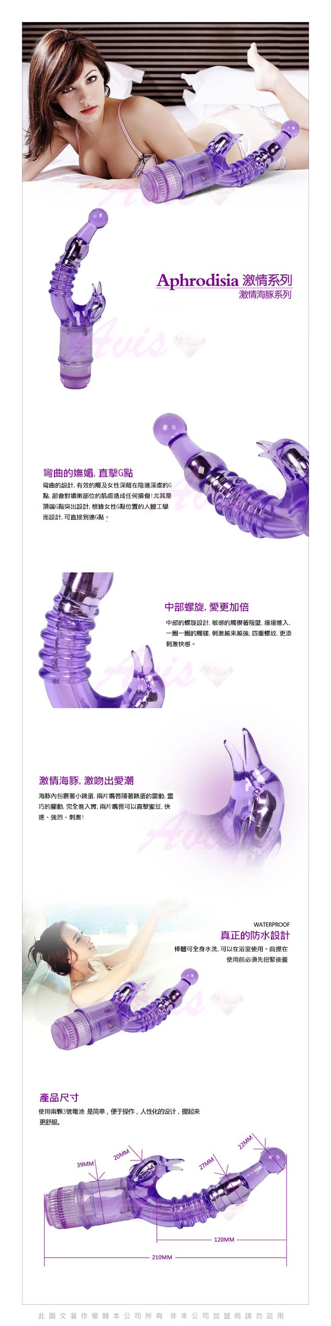 .商品名稱:APHRODISIA 冰晶海豚 雙G點高潮電動按摩棒-粉  *1