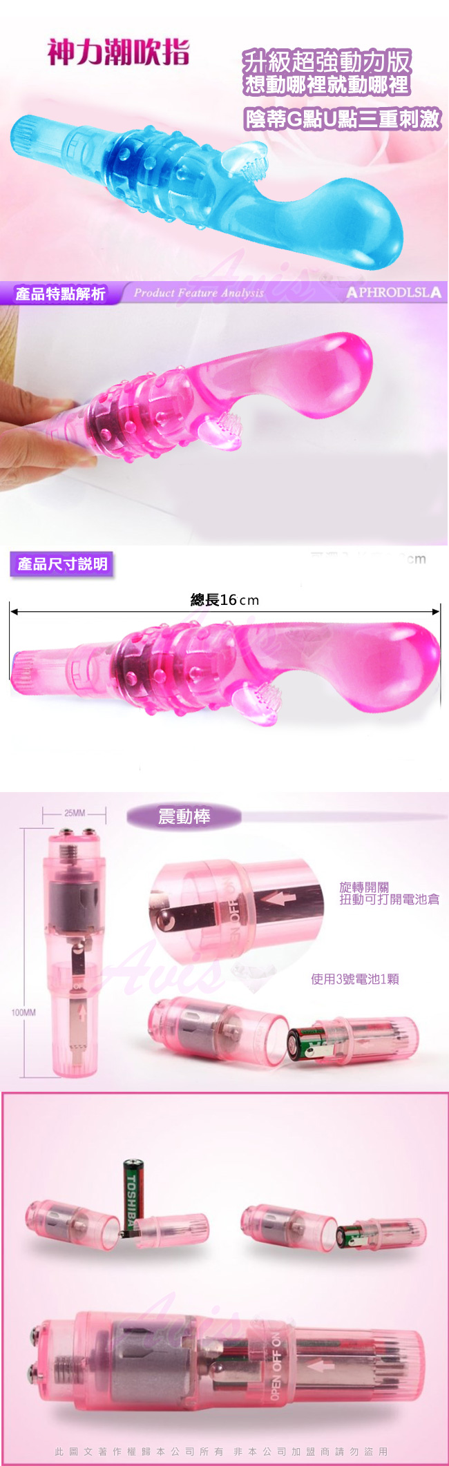 .商品名稱:APHRODISIA 水晶大拇哥 調情震動棒(無線震棒+激情套)-藍*1