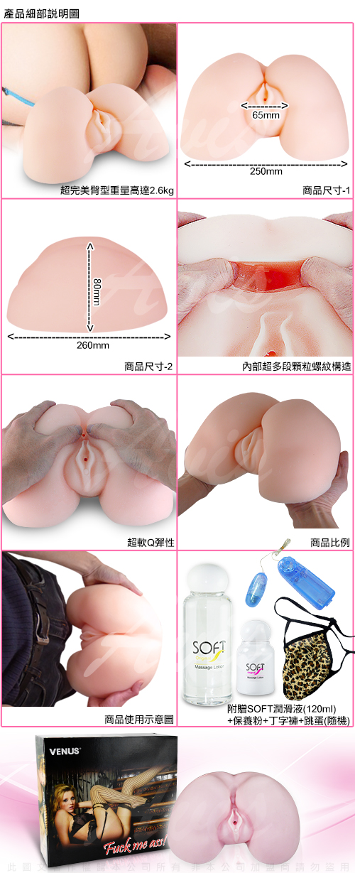 .主商品:風騷OL之美尻 雙穴自愛器(1:1仿真臀部)-重達2.6KG加贈120ml潤滑液+60ml保養粉+跳蛋*1