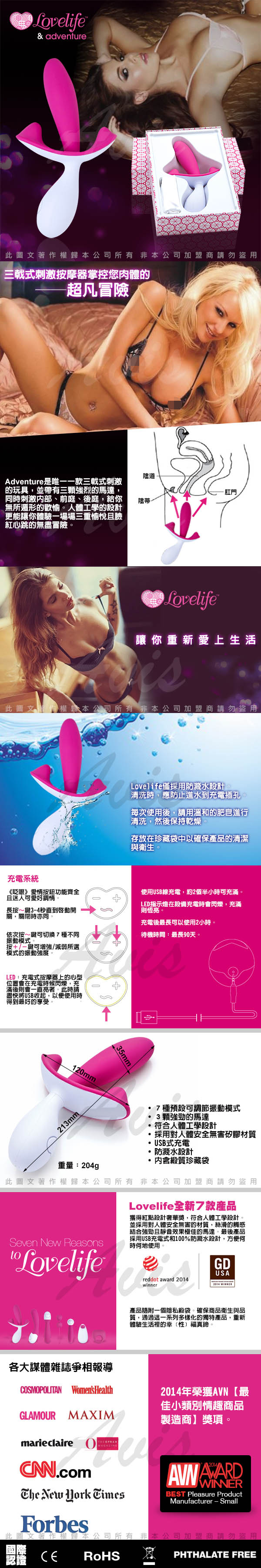 美國Lovelife Adventure 冒險 7段變頻 三點式刺激按摩棒