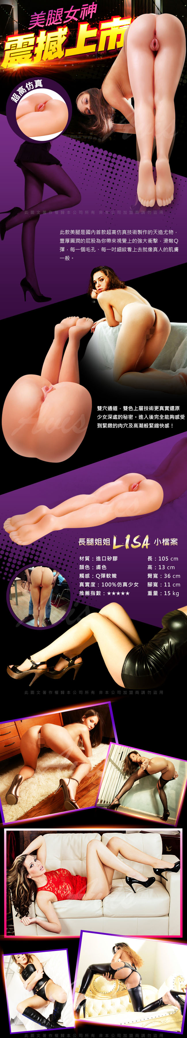 .商品名稱:美腿女神 LISA 美腿夾陰 15KG超重量級真人矽膠半身娃娃