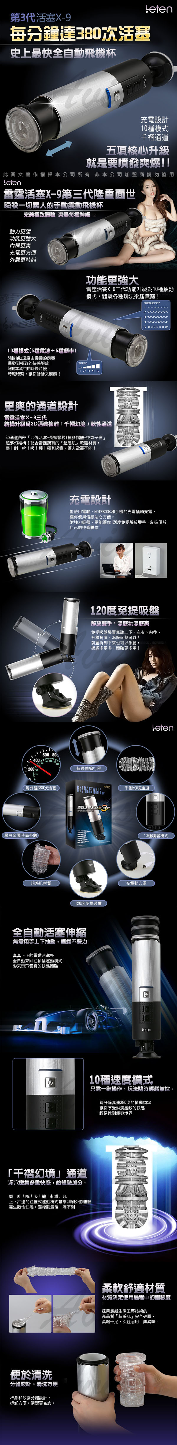 .主商品:銀河戰士 X-9 非手持式 10種抽動模式 全自動活塞吸盤自慰杯 *1