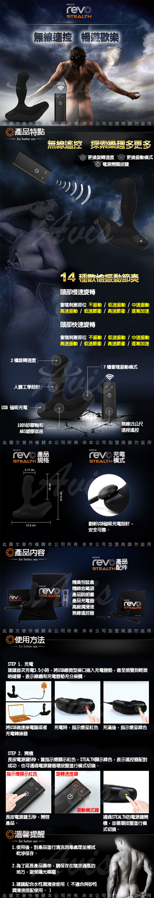.主商品:英國Nexus-Revo 3 雷沃三代 無線遙控 7X2段變頻 G點前列腺旋轉按摩棒-黑 (磁吸式充電型*1