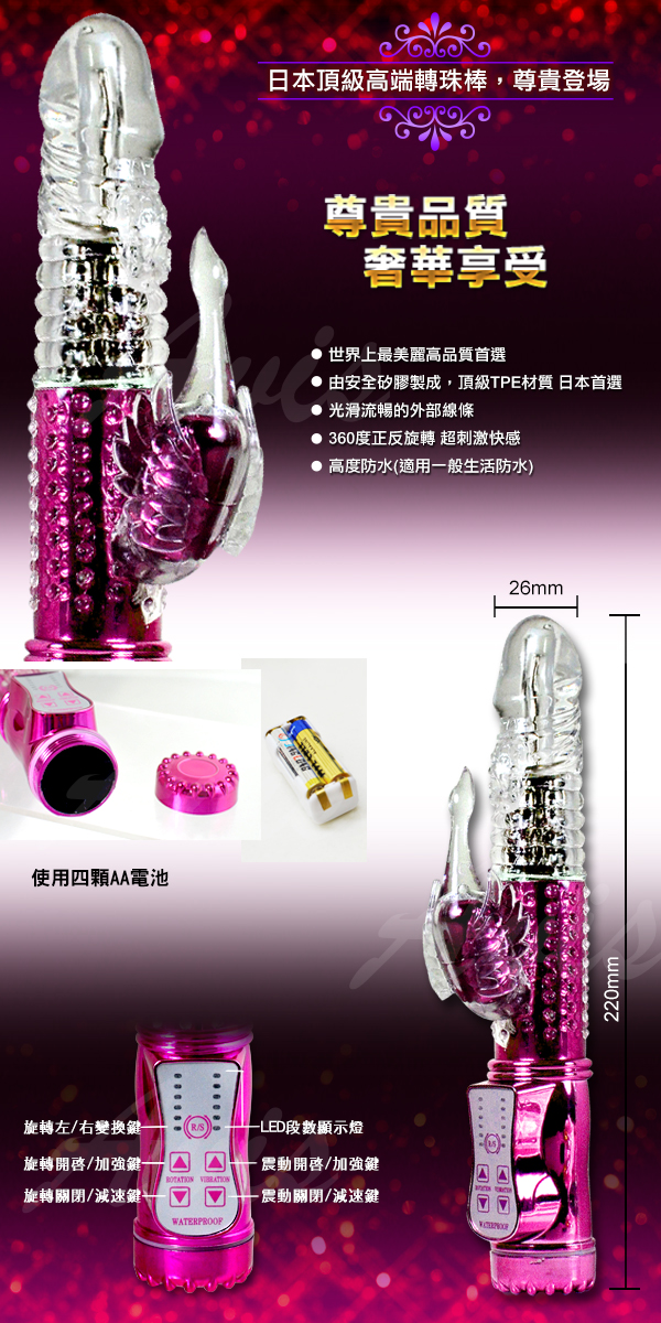 .商品名稱:天鵝灣之愛 288段變頻式轉滾珠按摩棒 *1