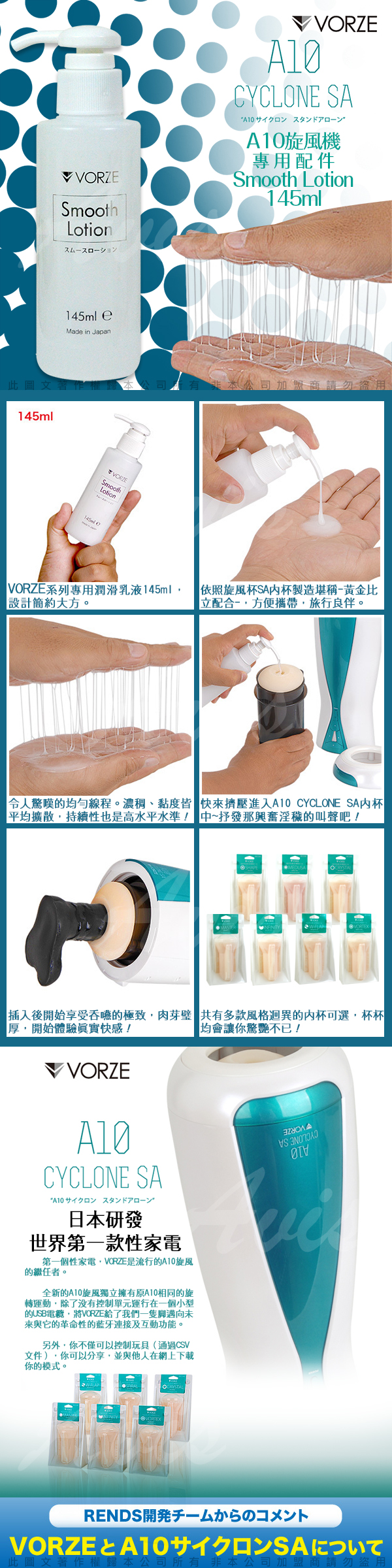 .商品內容:日本RENDS VORZE A10 專用 SMOOTH LOTION柔絲潤滑液 145ml X1