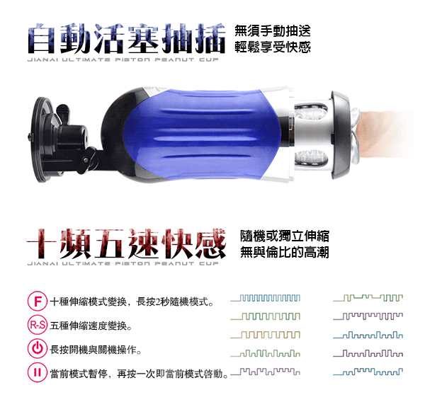 .商品內容:活塞魅藍 50種模式智能快速抽插男用 吸盤自慰杯 豔麗紅