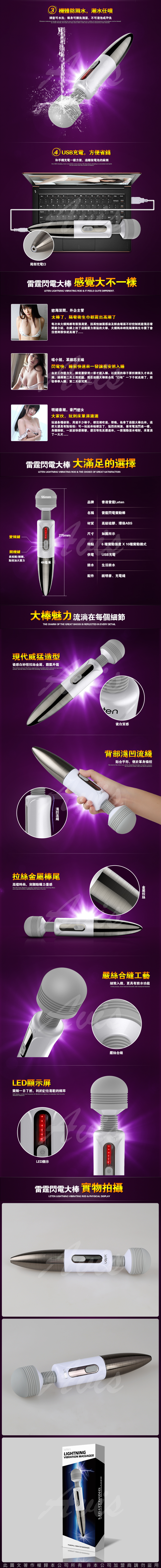 .主商品:閃電大棒 60段爆發式激震 閃電高潮AV女優按摩棒*1