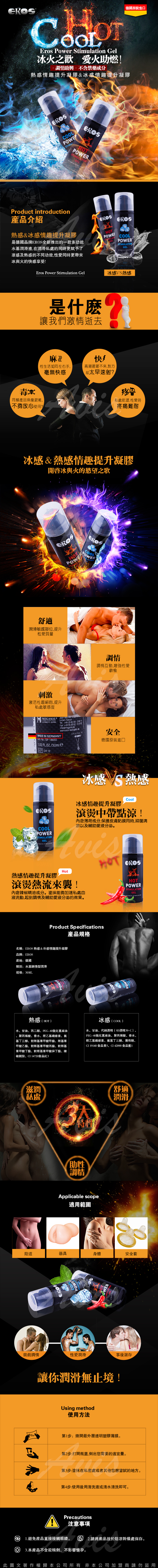 .主商品:德國Eros COOL POWER 冰火之歡 熱感情趣提升凝膠 30ml