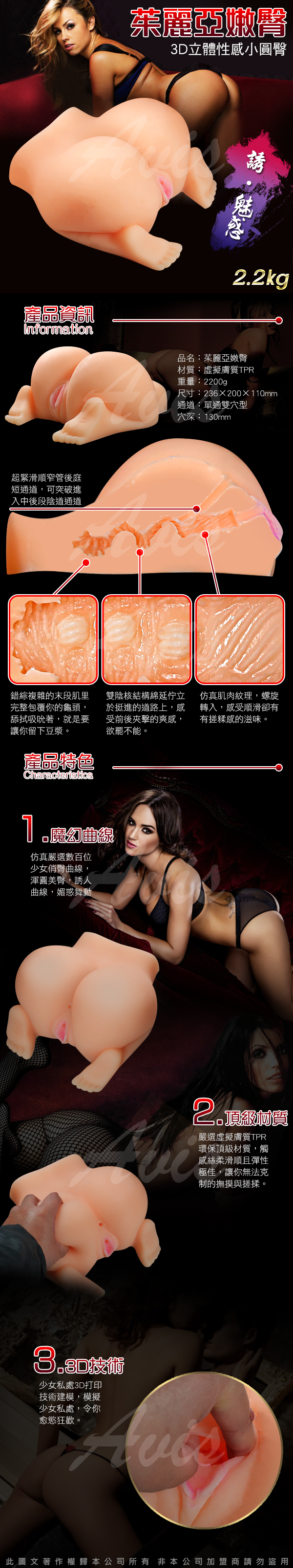 重達2.2KG。超柔軟超肉感的矽膠材質,用雙手緊緊抓住她的雙臀,把老二插入陰道,真是爽翻天