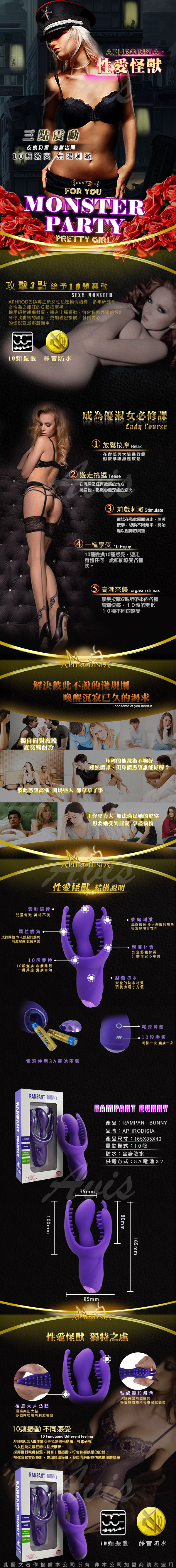 .主商品:APHRODISIA 三點齊攻邦尼 前戲專家挑逗G點潮吹按摩棒 紫