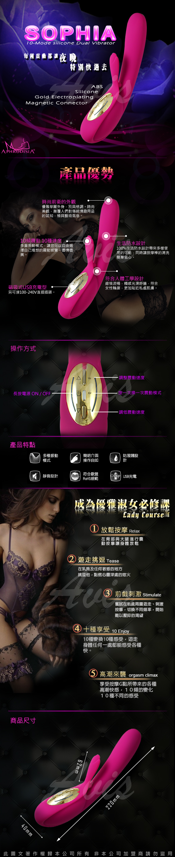 .主商品:APHRODISIA 淑女索菲亞 10X10頻 G點按摩棒 磁吸式USB