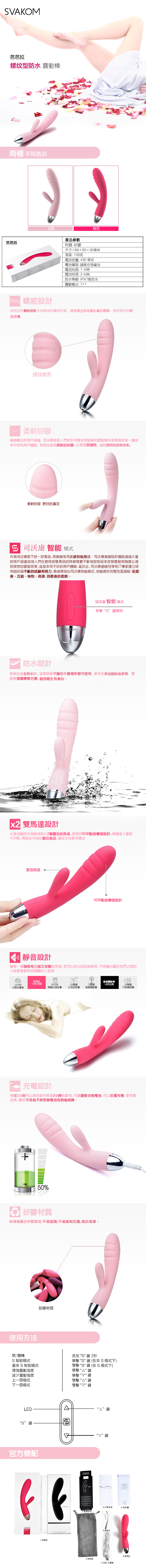 .商品內容:美國SVAKOM Barbara 芭芭拉 7+1段變頻 螺紋型 防水G點按摩棒