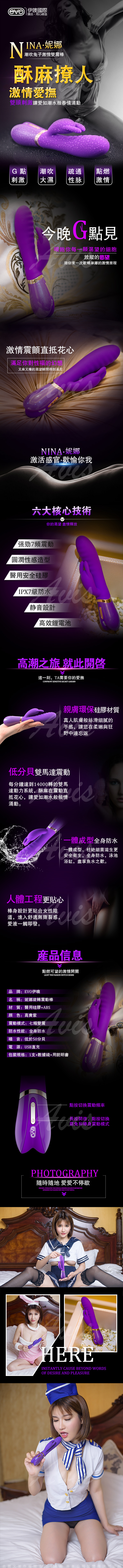 .商品內容:EVO NINA 妮娜 七段變頻 G點激情雙震按摩棒