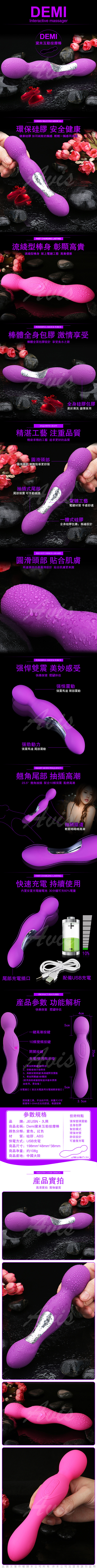 .主商品:Demi黛米 雙頭10段變頻震動USB充電按摩棒