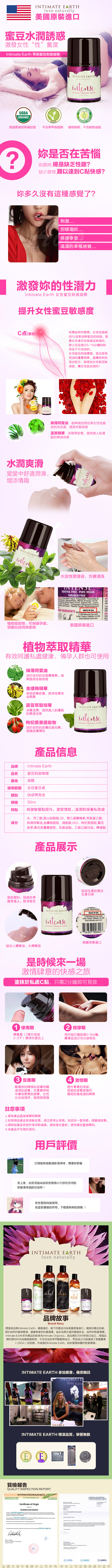 .商品內容:美國Intimate-Earth Intense Clitoral gel 女性蜜豆刺激凝露 30ml