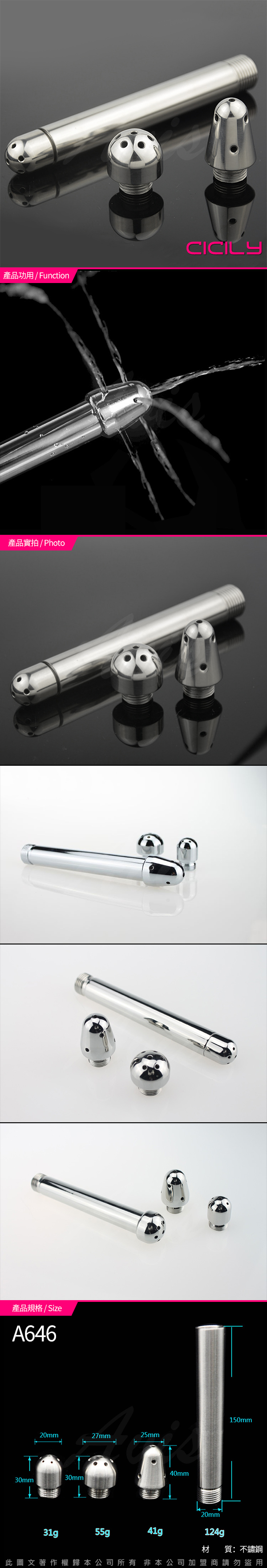 .商品內容:虐戀精品CICILY 激浪三式 不銹鋼款 沖洗 陰肛沖洗器 配三款沖洗頭