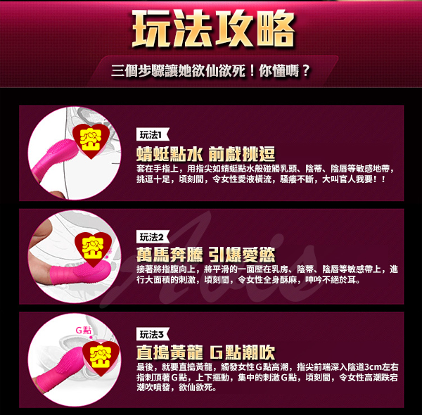 套在手指上用尖如蜻蜓點水般觸碰乳頭、陰蒂、陰唇