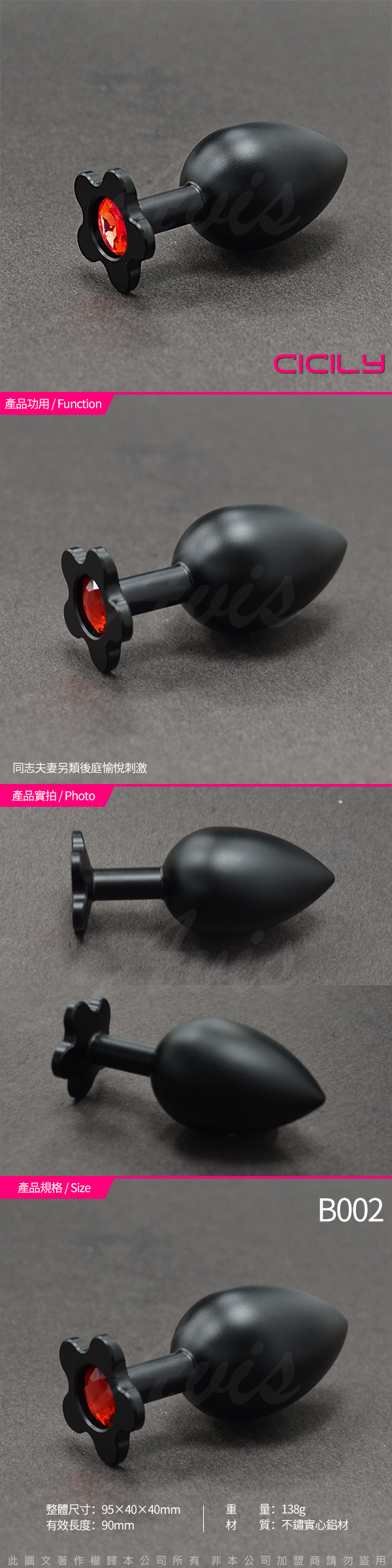 .商品名稱:CICILY 後庭小花 金屬寶石後庭塞 黑 錐形 大