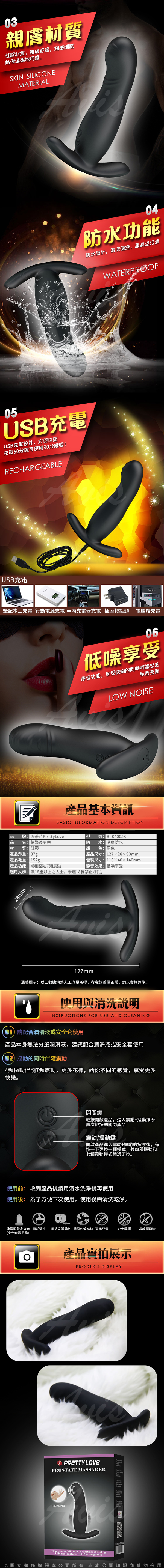 .商品名稱:PRETTY LOVE-放肆快樂USB充電後庭棒-4頻蠕動+7頻震動