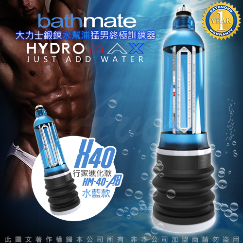 .商品內容:英國BATHMATE HYDROMAX X40 大力士鍛鍊水幫浦終極訓練器 水藍 行家進化款 HM-40-AB