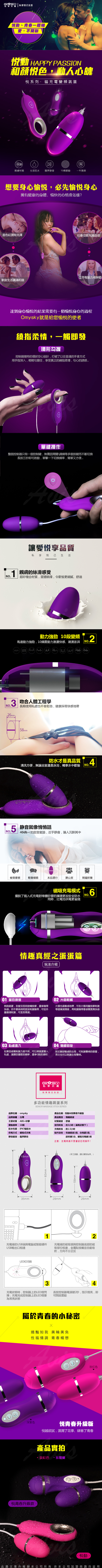 .商品內容:omysky 悅青春 升級版 10段變頻 情慾防水跳蛋 磁吸式充電 紫
