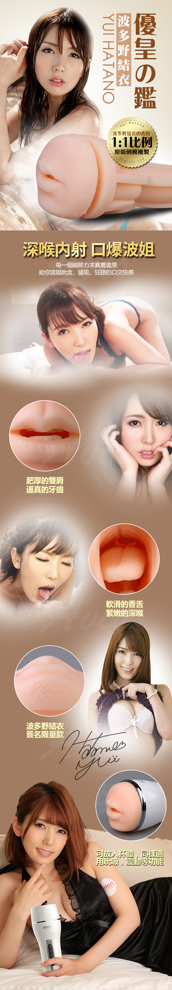 .商品內容:香港LETEN 優皇 波多野結衣 真實倒模 AV女優自慰杯 專用膠條配件 口部