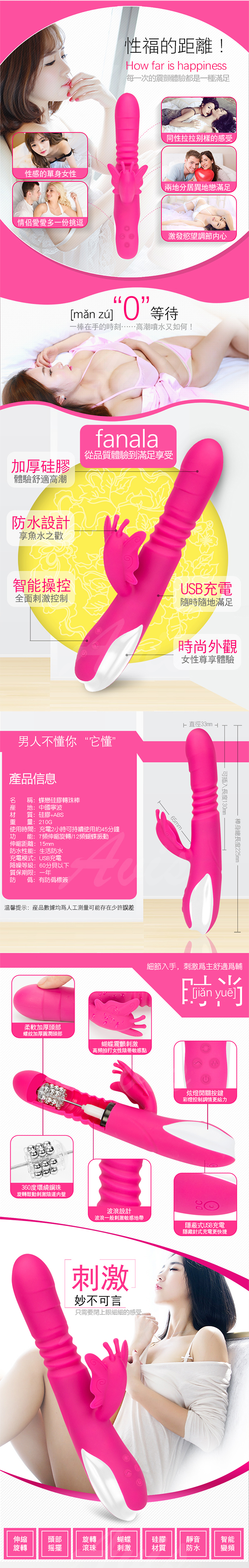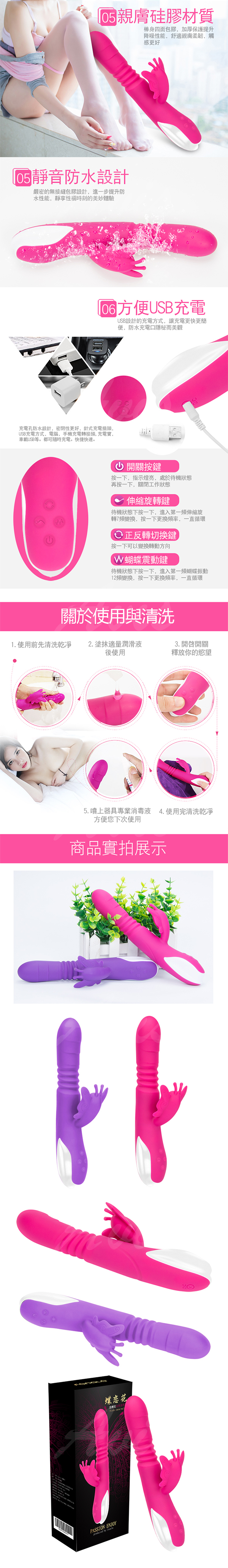 .主商品: 蝶戀花 7X12變頻震動搖擺 滾珠伸縮按摩棒