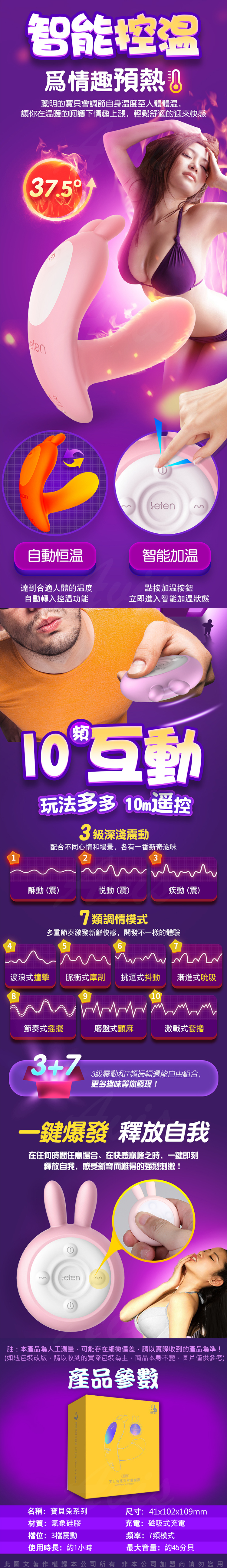 .商品內容:Q萌玩寵 寶貝兔系列 雙震+溫控 隱形穿戴 無線遙控跳蛋