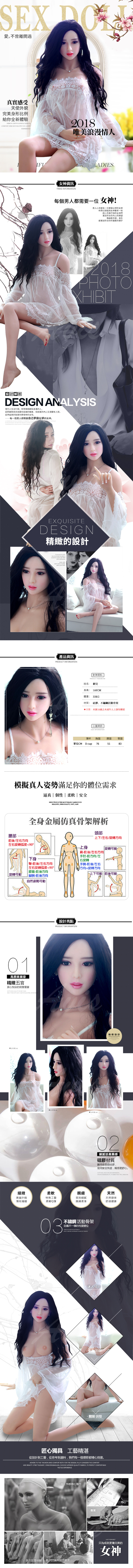 【材料】外皮(皮膚)為高級無毒超軟TPE,內有金屬骨架,四肢的活動範圍與真人類似。