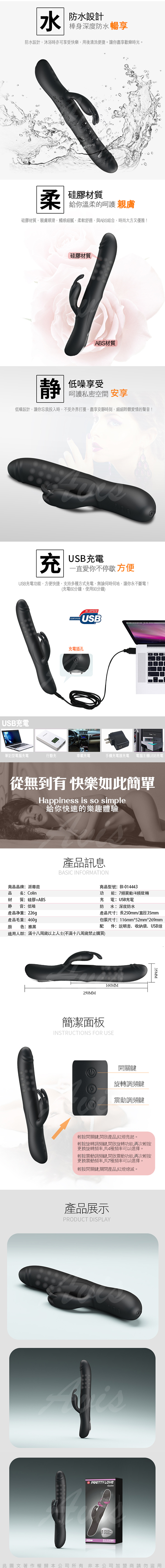 .商品內容:PRETTY LOVE COLIN 4+7智能旋轉USB充電震動按摩棒
