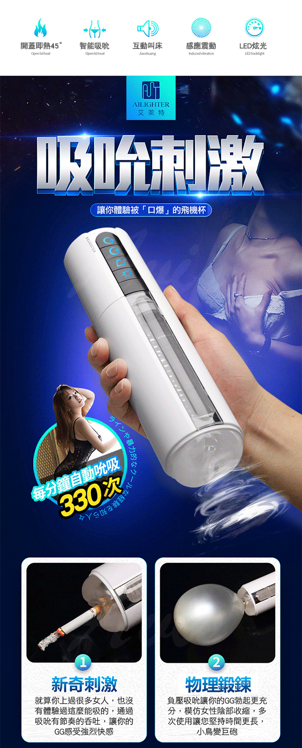 .主商品:艾萊特AILIGHTER 吮吸杯 6頻智能吮吸6種床叫發聲飛機杯(白色標準加熱版)