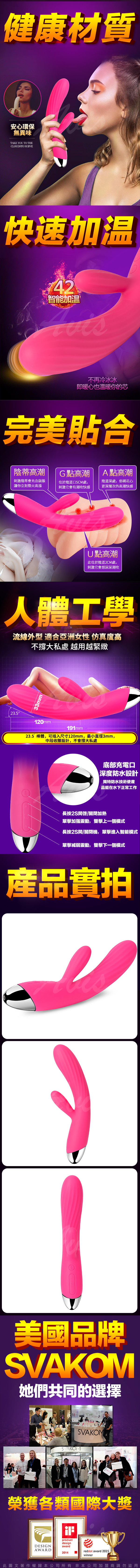 .主商品:美國SVAKOM Angel 安琪兒 雙震加熱情趣震動按摩棒 櫻桃紅