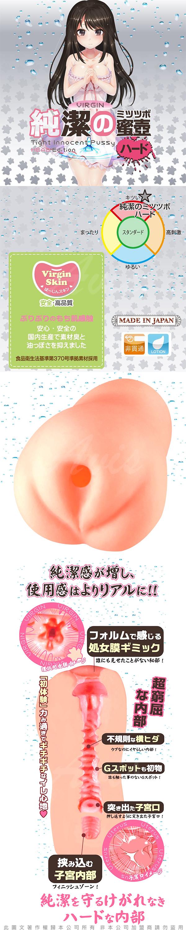 .主商品:日本對子哈特(Toys Heart) 純潔的蜜壺 處女膜初體驗 名器自慰套(硬版) HARD