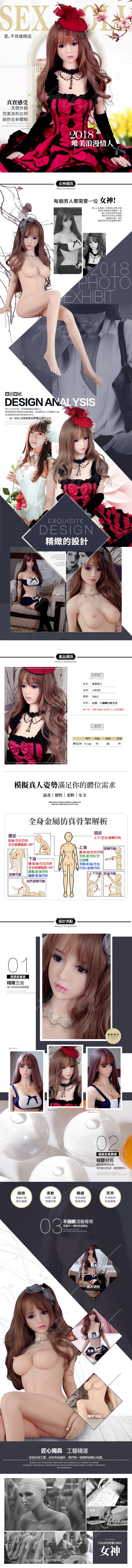【材料】外皮(皮膚)為高級無毒超軟TPE,內有金屬骨架,四肢的活動範圍與真人類似。