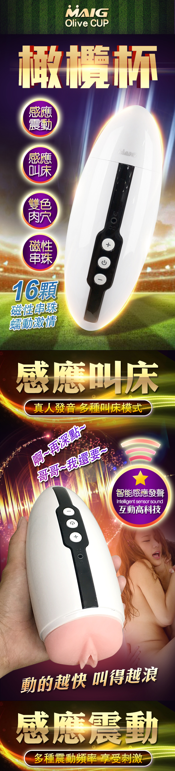 .商品名稱:橄欖杯 磁性串珠+感應震動+叫床 全自動電動夾飛機杯