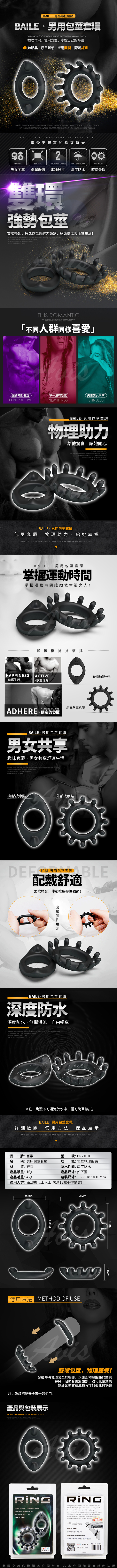 .商品名稱:BAILE Ring 延時鎖精阻復防水矽膠雙套環-A