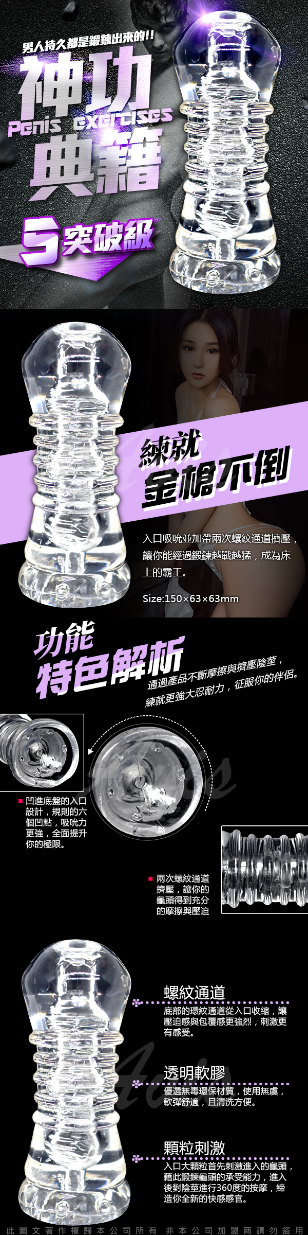 .主商品:神功秘籍龜頭陰莖鍛煉器 男優延時訓練器大師 名器 訓練器 5突破級